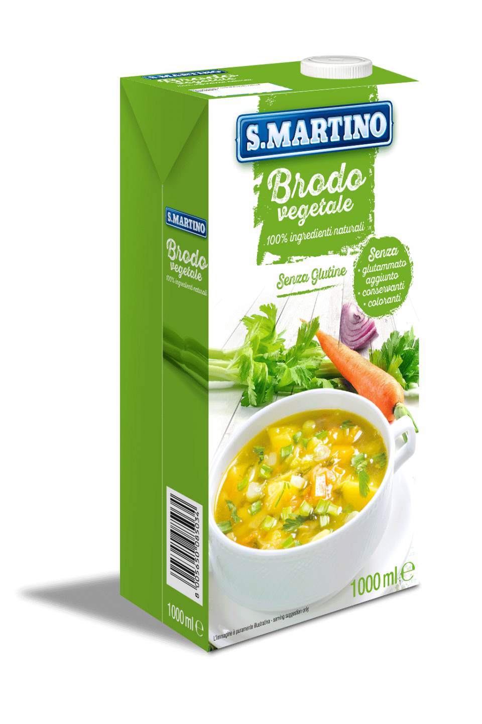 Cosa c'è di meglio di una gustosa zuppa o di un buon minestrone per riscaldarsi nelle fredde giornate invernali? S.Martino ha creato per te un prezioso aiuto in cucina, il Brodo Vegetale già pronto, con ingredienti 100% naturali, perfetto per insaporire zuppe, minestroni, risotti e tante altre ricette. Non solo gusto ma tanta praticità: basta solo scaldarlo!