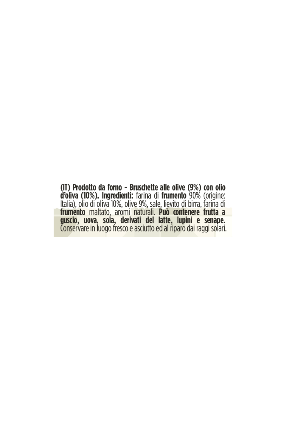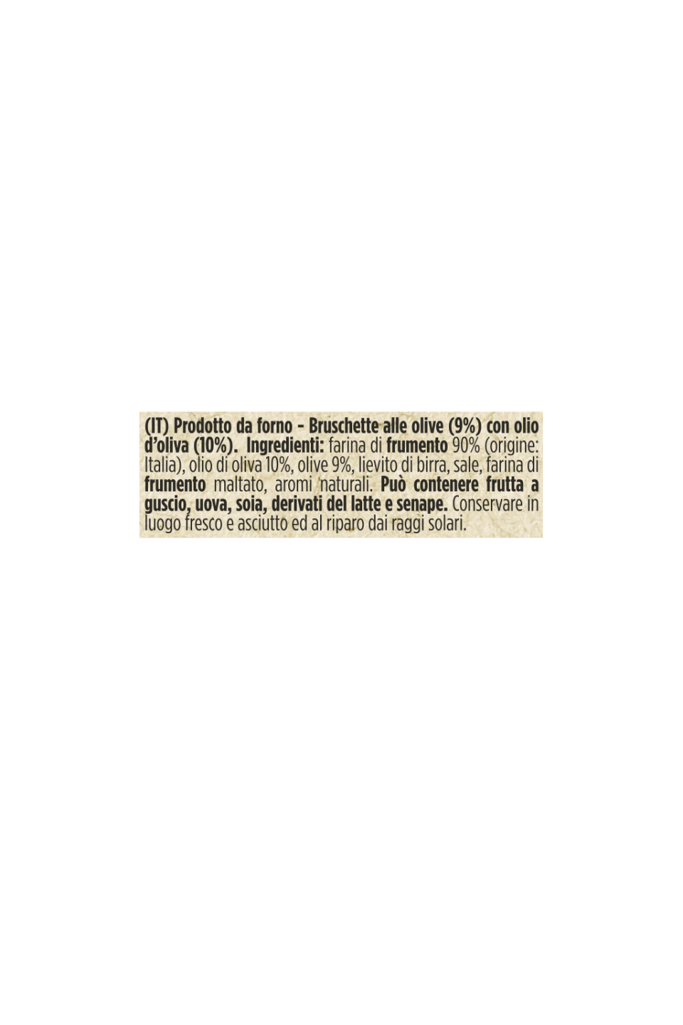 Dalla passione per le cose buone, nasce la Bruschetta al gusto Olive: al classico pane tostato abbiamo unito il sapore intenso delle olive per creare una bruschetta perfetta per mille occcasioni, da una semplice pausa ad un aperitivo sfizioso. Sperimentale in cucina per accompagnare i tuoi antipasti in modo creativo o per creare gustose ricette.