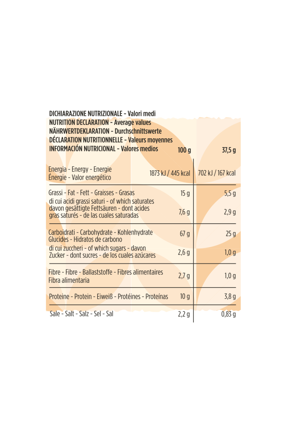Features: new recipe with italian flour and without palm oil. Suitable for vegan and vegetarians as well.