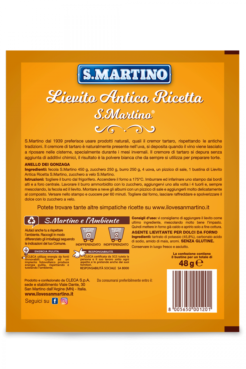 The instant leavening baking powder Antica Ricetta, is unique on the market with cream tartar, naturally obtained by italian grapes, it favours digestibility of the desserts made with it. This type of baking powder guarantees a very good leavening to make delicious bakery products. It is gluten free and included in the AIC handbook (Italian Celiac Association). The package contains 3 sachets of 16 g each. Each sachet is for 500 g of flour or potato flour.