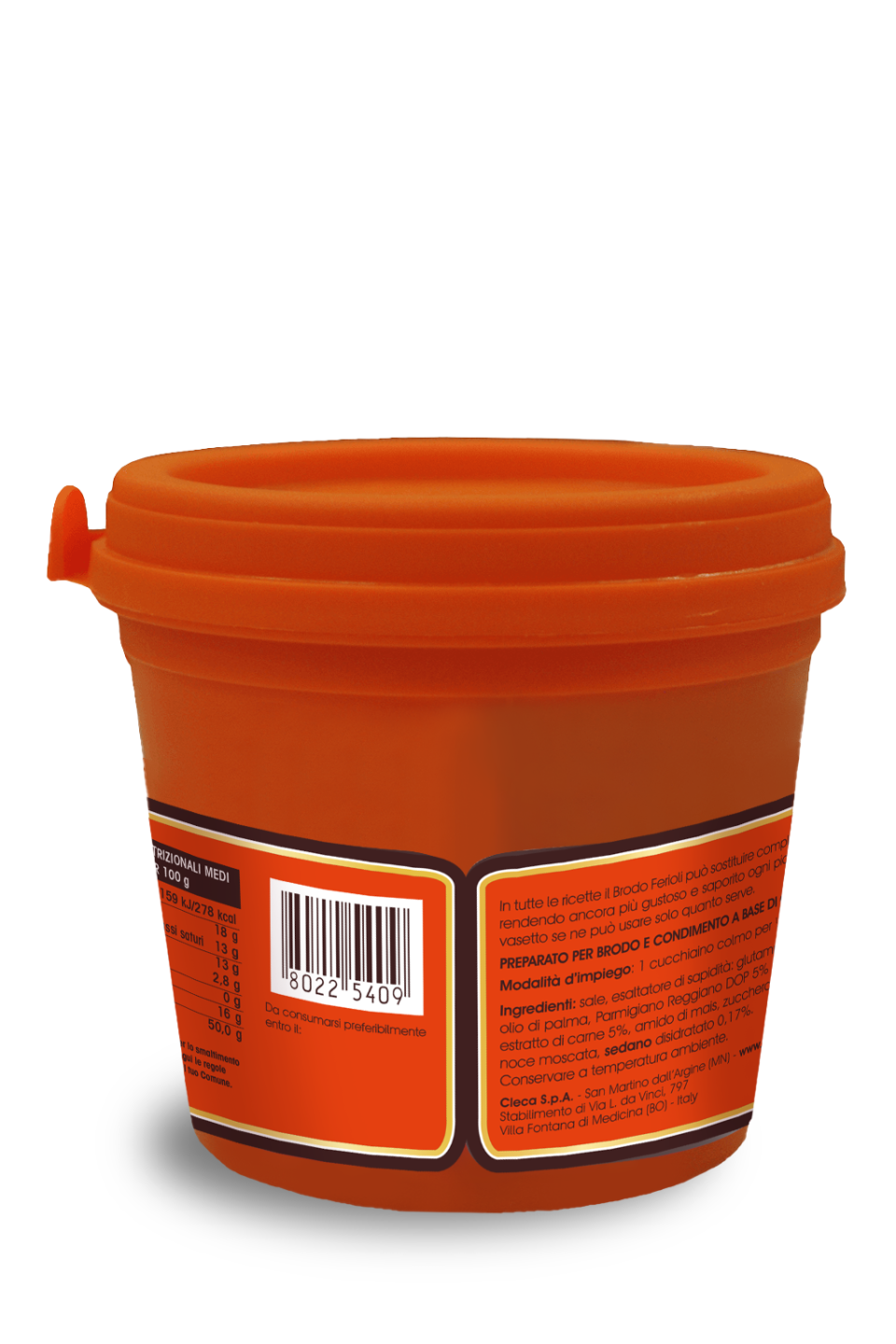 Features: it contains 5% of meat extract, 6% of parmesan cheese and a pinch of nutmeg, according to the true emilian tradition. The practical jar keeps the product's taste and properties intact.