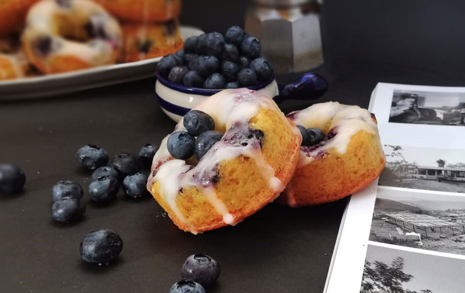 Aggiungere la vanillina, le scorzette di limone ed i mirtilli (consigliamo di infarinarli per evitare che cadono tutti in fondo); a piacimento si può aggiungere anche un goccio di limoncello.
