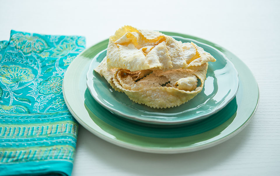 Tagliare la pasta a rombi e friggerla in abbondante olio bollente.