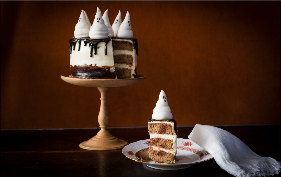 Accendere il forno a 100°C statico. Mescolare insieme lo zucchero con lo zucchero a velo e dividere il composto in due parti. Mettere gli albumi in una ciotola, aggiungere la prima metà degli zuccheri e montare a neve ben ferma. Quindi incorporare, un cucchiaio per volta, la restante miscela di zuccheri. Mettere la meringa in una sac à poche. In una teglia rivestita da carta forno, fare delle meringhe a spirale alte circa 6 cm. Cuocere per circa 2 ore, lasciando leggermente aperto lo sportello del forno. Quando il tempo di cottura è terminato, aprire lo sportello e lasciare che le meringhe perdano calore tenendole all’ interno. Staccarle dalla carta solo quando saranno fredde. Disegnare con un pennarello alimentare occhi e bocca.