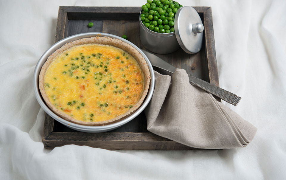 Stendere l'impasto in una tortiera di 24 cm di diametro, foderata con carta da forno, lasciando un bordo di 4 cm di altezza.